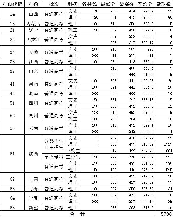 2019年我院在各省市录取情况一览表