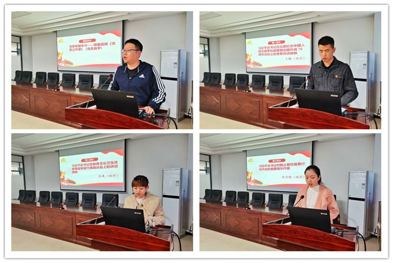 首先,王鹏、范爽、李月娇等3名党员分别领学了习近平总书记在出席纪念中国人民志愿军抗美援朝出国作战70 周年活动上的重要讲话精神、在教育文化卫生体育领域专家代表座谈会上的讲话精神以及对制止餐饮浪费行为作出的重要指示等内容。支部书记王东领学了中共中央、国务院印发的《深化新时代教育评价改革总体方案》。随后,大家共同观看了《英雄儿女》等视频进行“四史”教育学习。