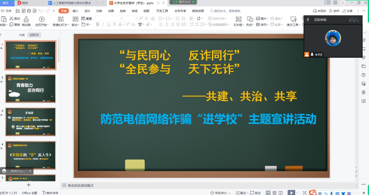 召开主题班会,强化学生防范意识。通过线上和线下相结合的形式召开主题班会,以发生在学生身边的鲜活案例,对学生进行防范电信诈骗安全知识教育,讲解了“什么是电信网络诈骗,电信网络诈骗的种类、诈骗的形式及危害”等知识,提升同学们防范电信网络诈骗意识和鉴别能力,增强大学生自我预防、自我保护、自我应对、自我逃生的能力。