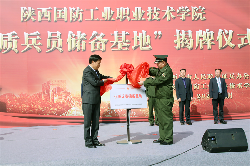 鄠邑区区委书记李化讲话。他表示,“优质兵员储备基地”的揭牌,标志着鄠邑区征兵工作迈上新征程、开启新篇章。希望学校能够弘扬“忠博武毅”的国防职教精神,发挥国防职教方面的特色优势,培养出更多的高技术能手、高素质人才,为党的国防事业做出更大的贡献。希望学员们为新时代国防事业挥洒激情与热血,把青春梦融入强军梦,勤奋刻苦学习,当好红色传人。鄠邑区将一如既往地支持优质兵员储备基地建设,支持国防和军队建设,健全完善军地协作机制,推进军民融合发展,巩固军政军民团结局面,努力营造重视国防、关心国防、支持国防的浓厚氛围。