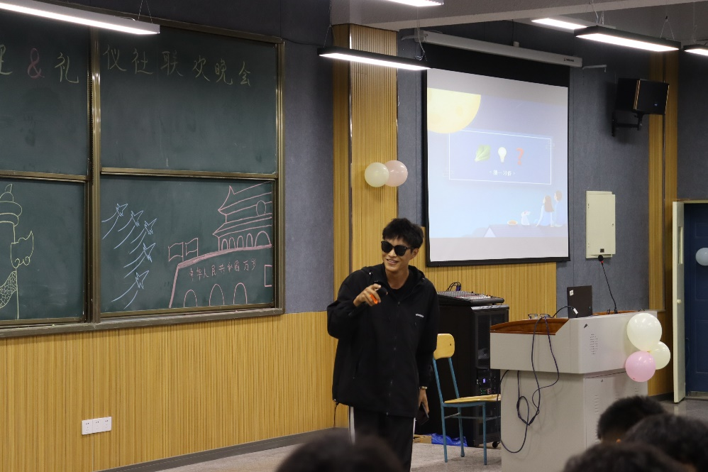 才艺展示结束,到了联谊会的第三项——‘猜灯谜’。同学们踊跃参与,抢答环节紧张激烈,融知识性与趣味性与一体,笑声不断。“抢椅子”游戏环节中,面对礼仪社女生预征班男同学也展现出了他们的绅士风度,失败甘愿接受惩罚,不知不觉中联谊晚会接近尾声,大家在欢快的交谈中相互了解,建立了深厚的友谊。