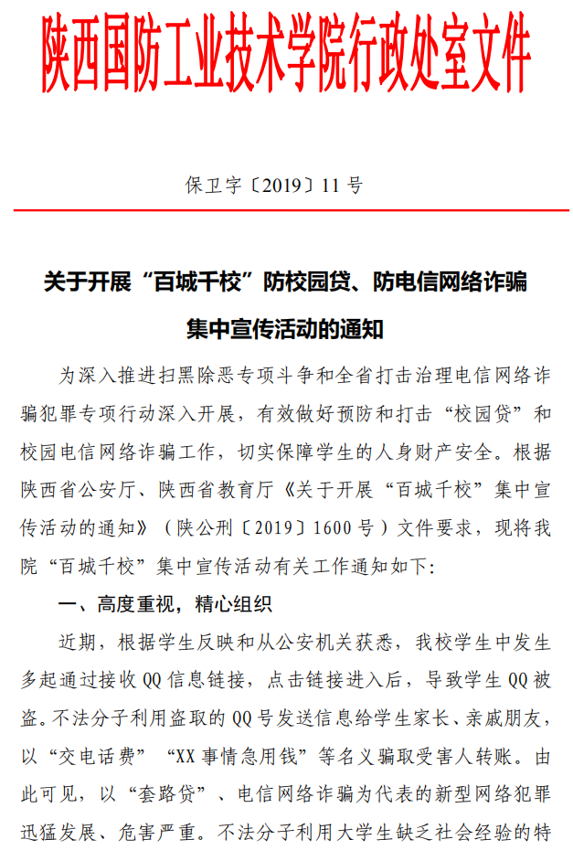 关于开展“百城千校”防校园贷、防电信网络诈骗集中宣传活动的通知