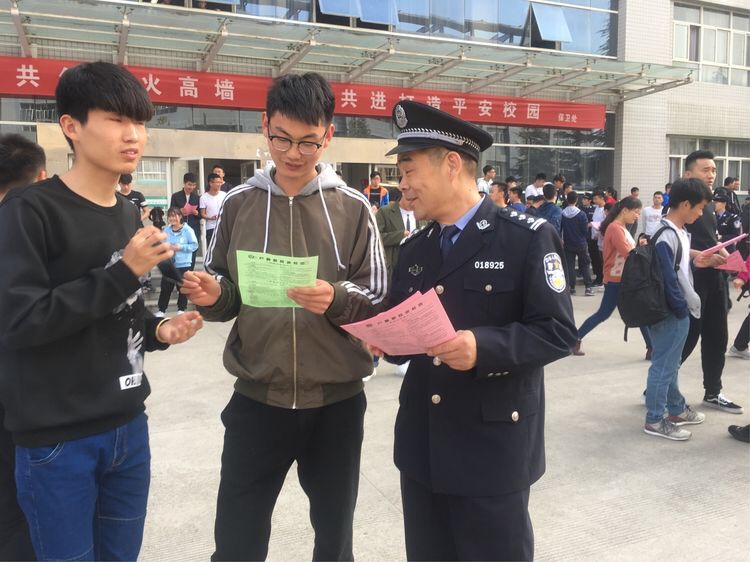户政大队的警官和保卫处工作人员现场为学生们发放户籍新政宣传单。各班班长、团支书领取户籍新政资料回去向同学和家人朋友宣传,鼓励周围人才落户西安。