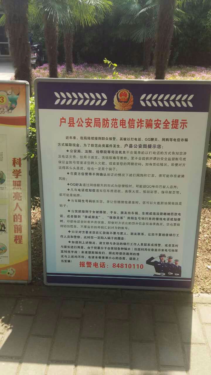 2017年6月16号,户县公安局来我院对广大师生进行防电讯诈骗及反邪教宣传,以图文并茂的展板向师生展示了电讯诈骗的各种方式及应对措施以及邪教的性质和危害,并以专业的知识经验现场解答学生的相关提问。对我院师生提高防电讯诈骗意识及反邪教意识起到了很好的促进作用。