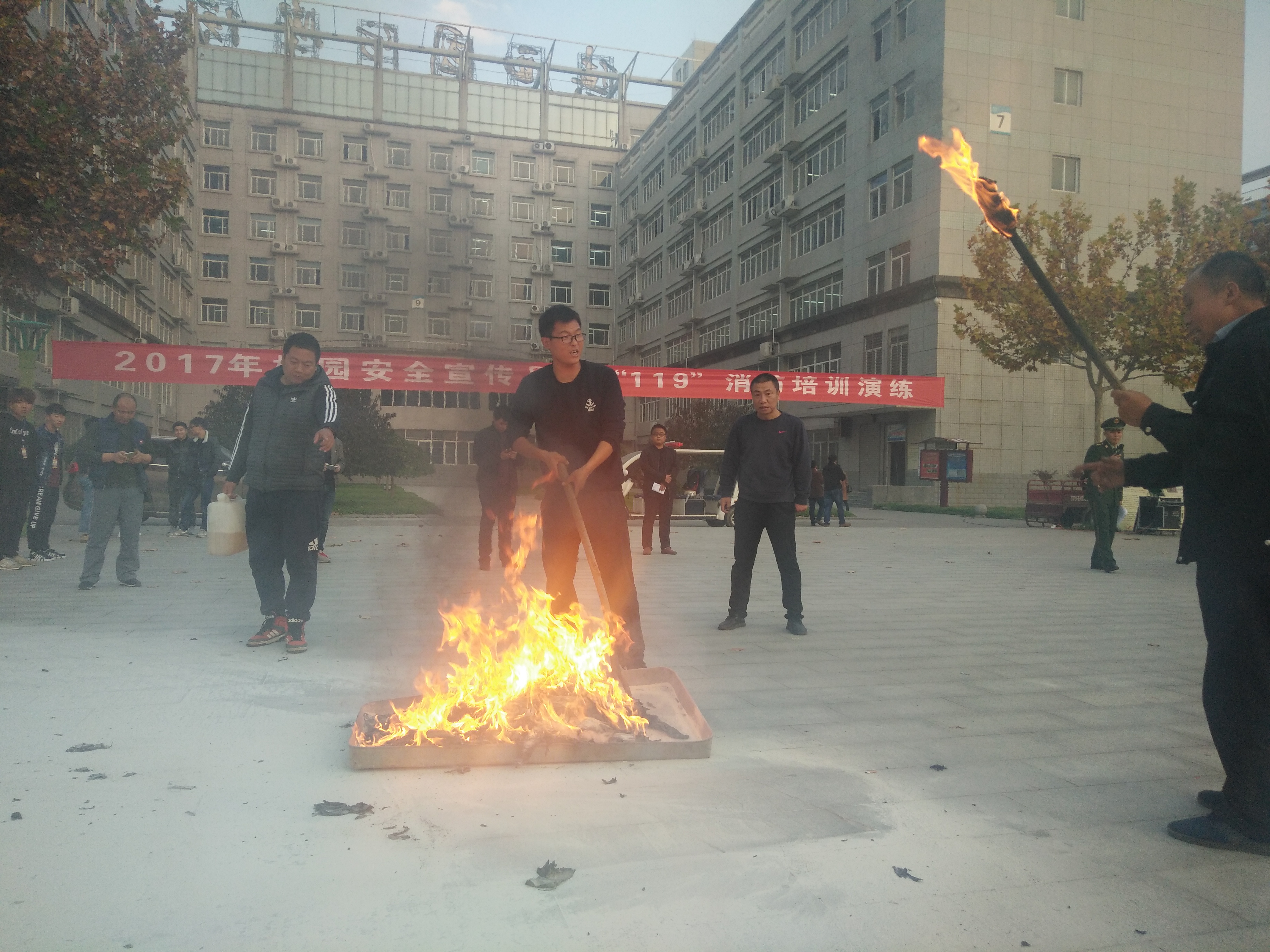 值第二十六个“119”全国消防日来临之际,根据陕西省高教工委关于开展“119”消防安全宣传月会议精神要求,同时配合2017年度校园安全宣传月活动主题,我校于11月8日下午四点半在利剑广场开展“119”消防培训演练活动。