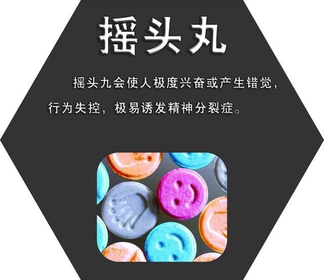 “摇头丸”是一种新的毒品——“冰”毒衍生物二亚甲基双氧苯丙胺(MDMA)和亚甲氧基苯丙胺(MDA)的俗称,因服食后听到音乐会疯狂摇头而得名。“摇头丸”原产荷兰,根据幻觉种类、幻觉发生时间及幻觉持续时效的不同,有198种产品,目前,在深圳较常发现的约有20多种。