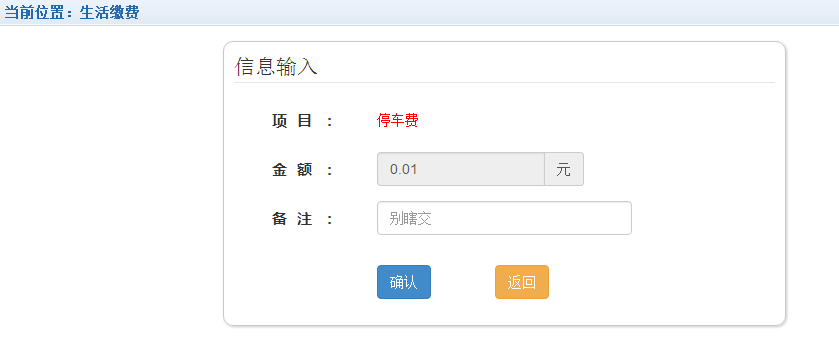 登陆支付平台后,点击导航栏的个人信息按钮,显示个人信息确认及维护界面。如图3.2-1所示。请确认个人信息无误后再进行缴费,避免误交费。