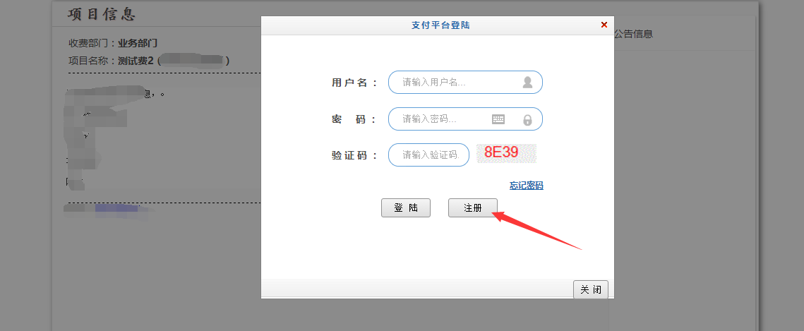 已注册用户(包括在校生、其他使用过平台缴费的人员)可以登录支付平台,点击导航栏“报名信息”界面,选择报名项目,点击“报名”按钮进行报名。如图3.8-1所示