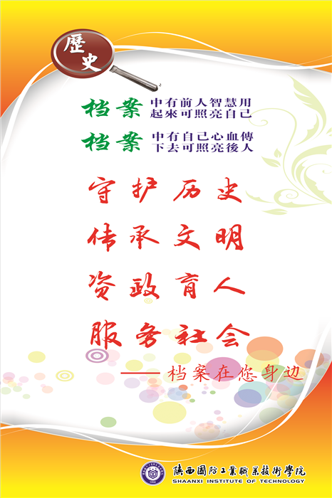 档案是人类社会实践的真实写照,是社会的宝贵财富,是国家重要的信息资源和珍贵的文化遗产,是学校工作的主要痕迹。面对档案就是与历史对话,就是与知识同行。希望通过6.9国际档案日宣传增强全校师生的档案意识。