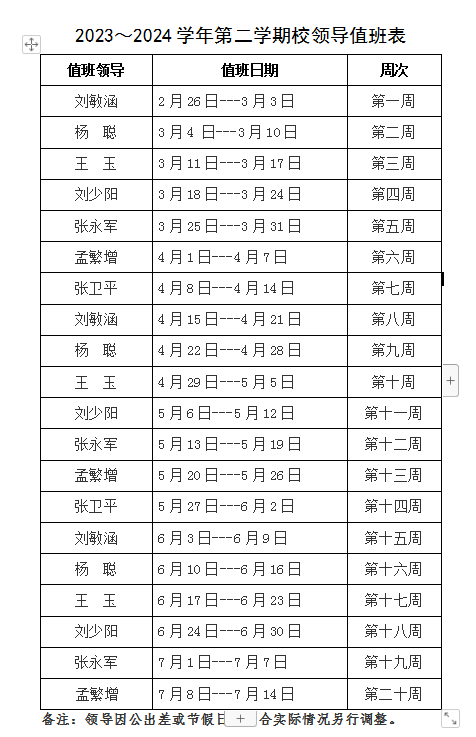 上一条:2023-2024学年第二学期校领导接待日下一条:2022-2023学年第一学期院领导接待日值班表