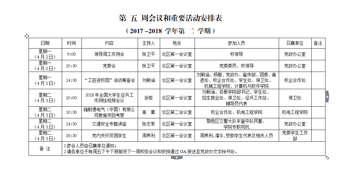 上一条:第 六 周会议和重要活动安排表 (2017 -2018 学年第 二 学期)下一条:第 四 周会议和重要活动安排表 (2017 -2018 学年第 二 学期)