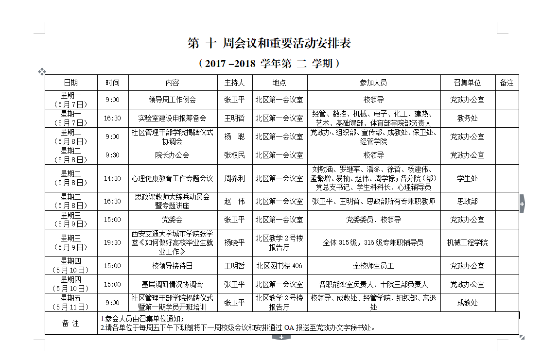 上一条:第 十一 周会议和重要活动安排表 (2017 -2018 学年第 二 学期)下一条:第 九 周会议和重要活动安排表 (2017 -2018 学年第 二 学期)