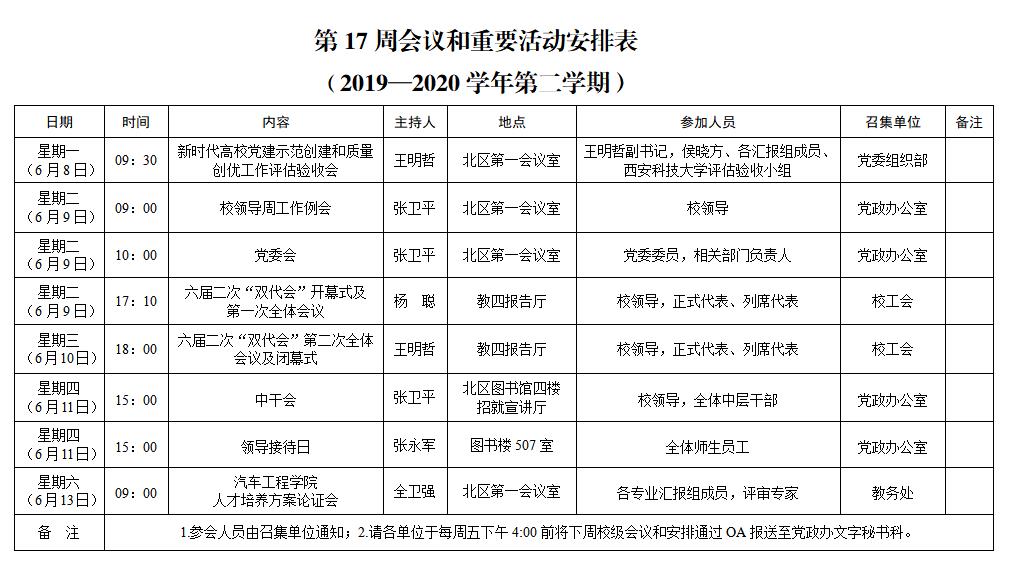 上一条:第18周会议和重要活动安排表(2019—2020学年第二学期)下一条:2019-2020学年第十周会议和重要活动安排表