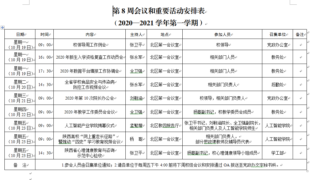 上一条:2020-2021学年第一学期第9周会议和重要活动安排下一条:2020-2021学年第一学期第7周会议和重要活动安排