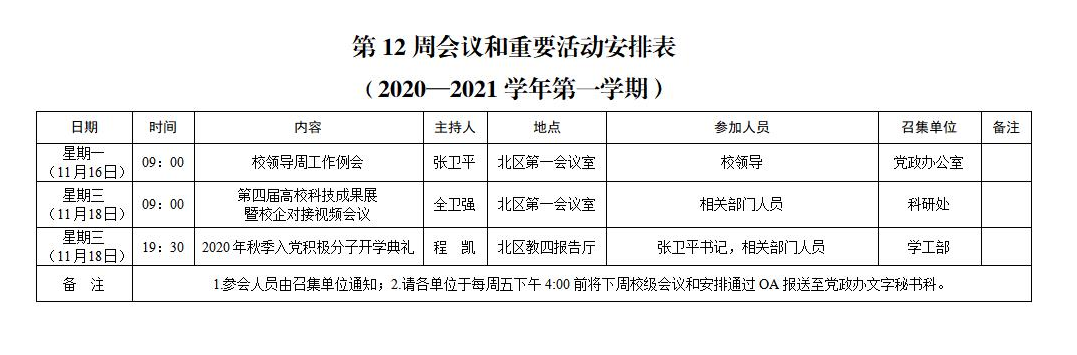上一条:2020-2021学年第一学期第13周会议和重要活动安排下一条:2020-2021学年第一学期第11周会议和重要活动安排