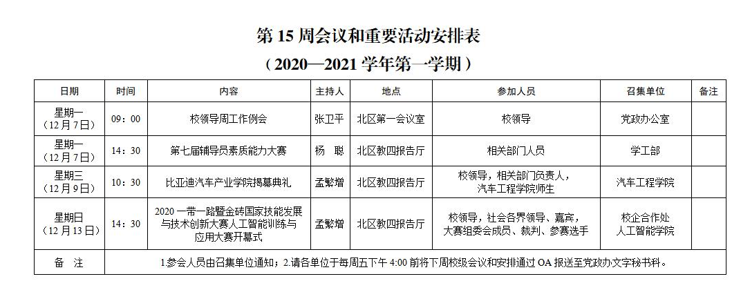 上一条:2020-2021学年第一学期第16周会议和重要活动安排下一条:2020-2021学年第一学期第13周会议和重要活动安排
