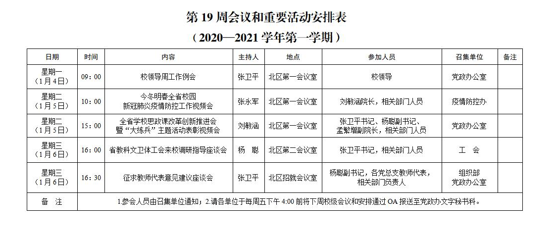 上一条:2020-2021学年第二学期第3周会议和重要活动安排下一条:2020-2021学年第一学期第18周会议和重要活动安排