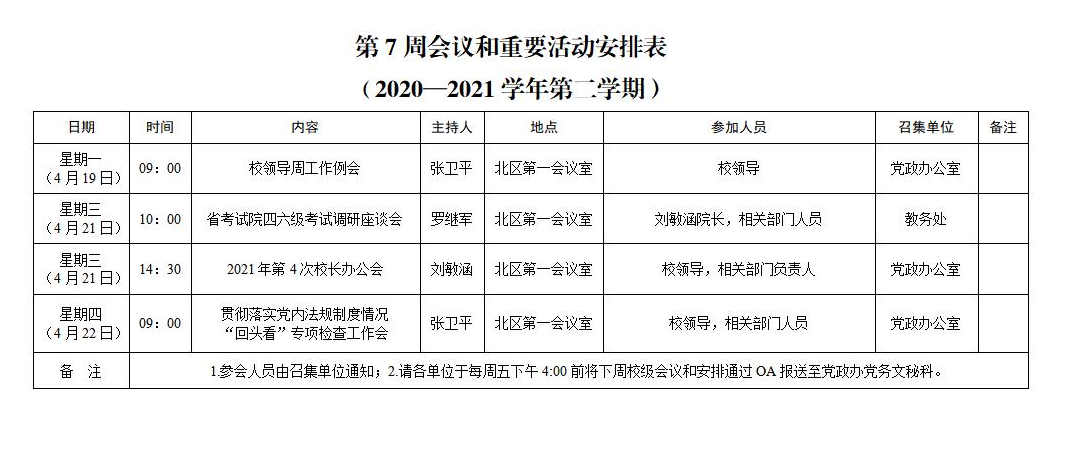 上一条:2020-2021学年第二学期第8周会议和重要活动安排下一条:2020-2021学年第二学期第6周会议和重要活动安排