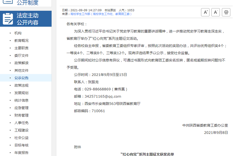 为深入贯彻习近平总书记关于党史学习教育的重要讲话精神,进一步推动党史学习教育走深走实。省教育厅举办了“红心向党”系列主题征文活动,我校董永辉在此次征文活动中获得二等奖。