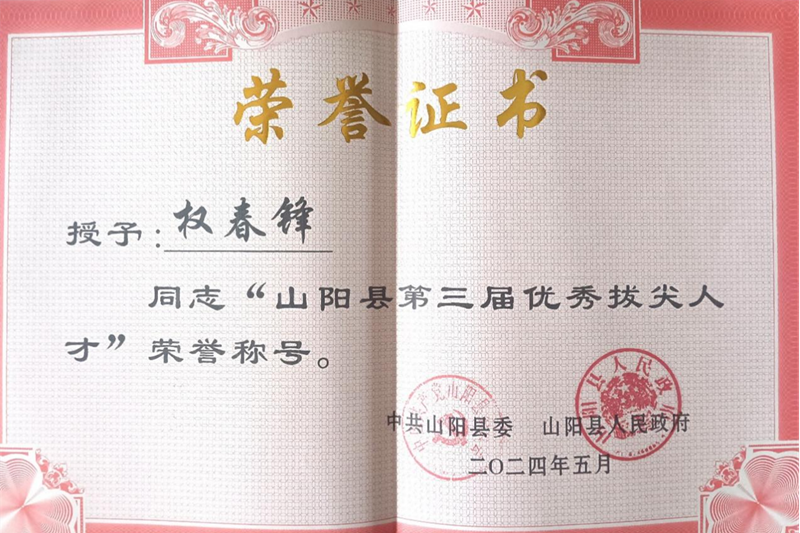 我校教育人才“组团式”帮扶教师权春锋荣获山阳县优秀拔尖人才称号