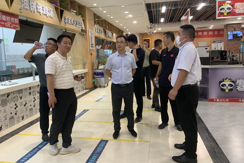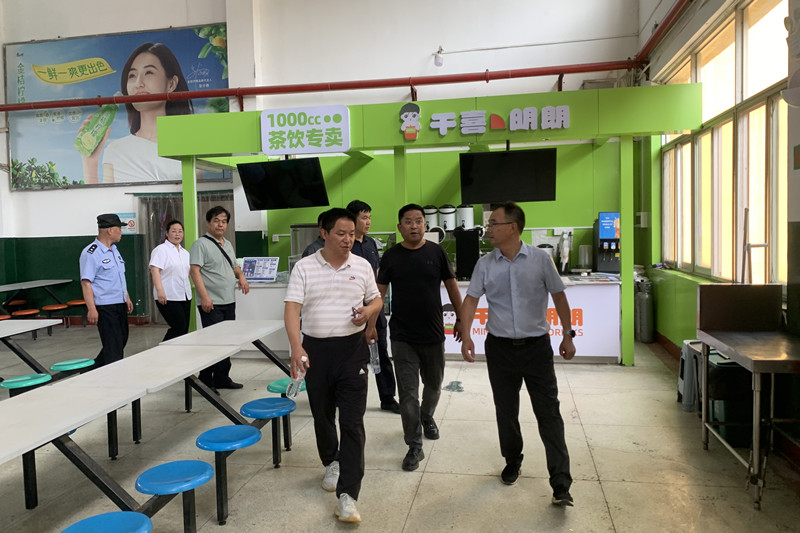 在食堂,检查组一行实地查看了后厨卫生保洁,了解了物资采购情况,就做好新学期师生用餐保障、加强校园食品卫生安全等工作提出了要求。