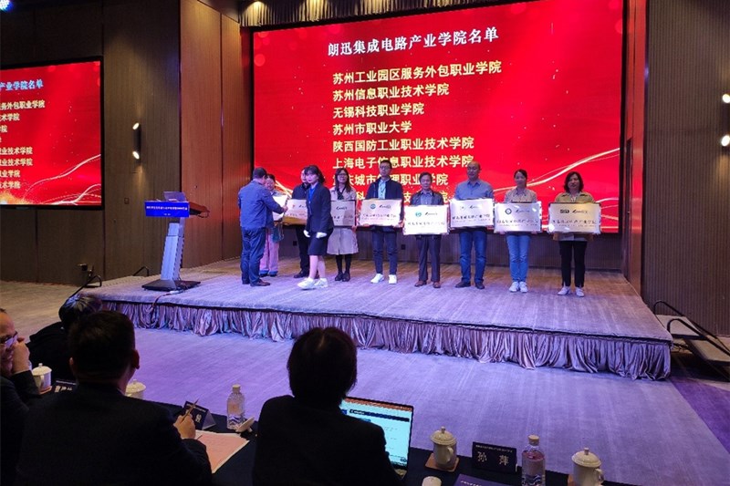 为促进我校微电子技术专业的进一步发展,加强校企深度合作,经过会议协商,确定我校电子信息学院为“朗讯集成电路产业学院”,同时我校被确定为第二届常务理事会机构,会议中为产业学院进行了授牌。