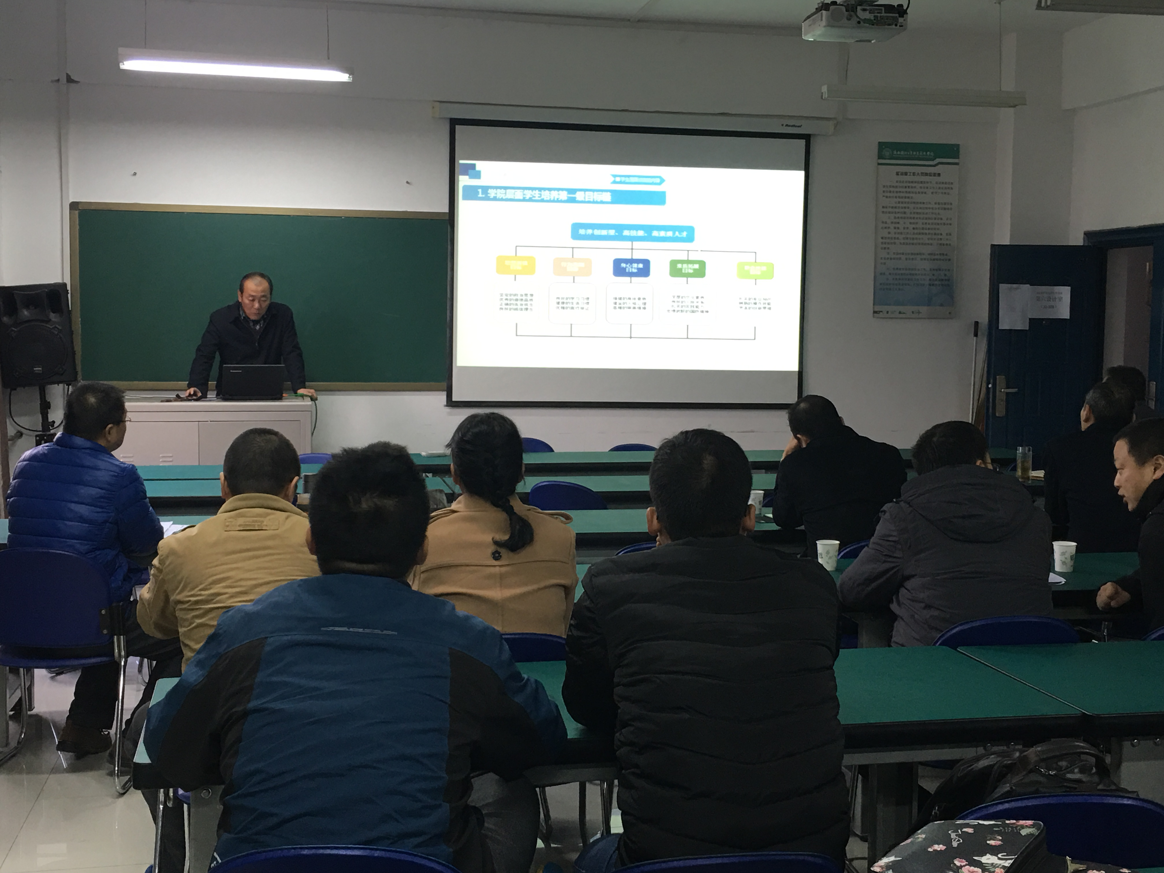 11月21日,电子工程学院在北10-308进行诊改工作汇报。校党委书记王明哲、项目办主任刘向红、质控中心刘龙江主任、人事处处长侯晓方、学生处处长周养利等领导出席汇报会,分院专业带头人、骨干教师、办公室主任、教学科长及部分老师参加了会议。
