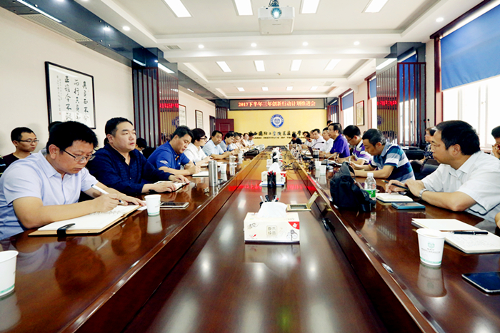 为更好地推进三年创新行动计划,安排部署下一阶段重点工作,9月14日下午,我校在北区会议室召开了2017下半年三年创新行动计划推进会议。党委书记张卫平、院长张权民、党委副书记王明哲出席会议并讲话,会议由教务处处长孟繁增主持。全体中层干部,创新行动计划各项目负责人、任务所属的相关处室负责人参加了会议。