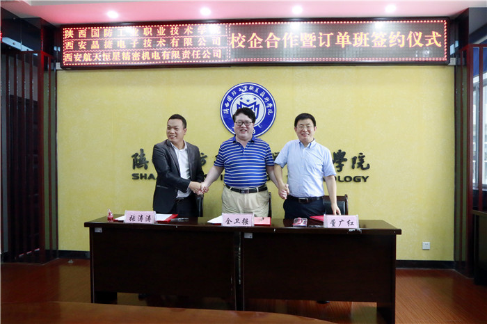 9月14日下午,我校与西安晶捷电子技术有限公司、西安航天恒星精密机电有限责任公司举办校企合作框架协议暨订单班合作协议签约仪式。18新利苹果客户端副院长全卫强、西安航天恒星精密机电有限责任公司总经理董广红、西安晶捷电子技术有限公司人力资源部经理张涛涛、电子工程学院等相关人员出席了签约仪式。签约仪式由电子工程学院院长邱燕主持。
