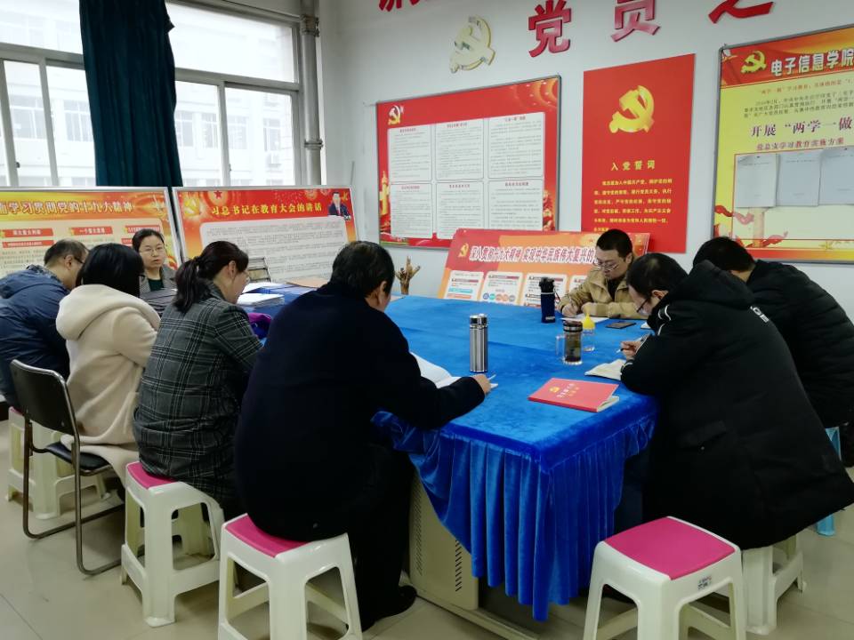 为了进一步加强党的建设,提高总支委员和支部委员政治理论水平,提升党建工作能力,电子工程学院党总支制定了总支委员和支部委员“月学习制度”。2019年3月1日下午4:30在8-511电子工程学院党总支组织总支委员及支部委员开展学习《中国共产党支部工作条例》。会议由分院党总支书记张双琦主持。