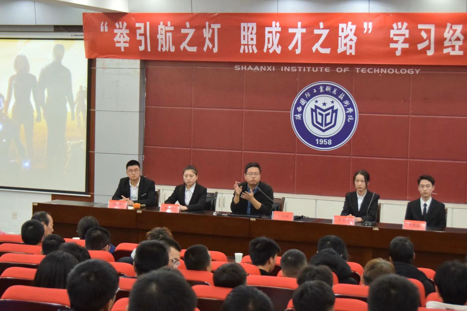 此次学习交流会我们邀请到了2019年陕西省互联网+大赛金奖的指导老师、电子信息教研室石宝刚老师、卓荣根等八名学习成绩优异的学生代表。本次活动分为三个环节,各位学生代表逐个讲述自己对大学生活的感悟和认识,石宝刚老师用自己的经验讲述对学习的看法、新生们以提问的方式与老师和学生代表们交流。交流会期间气氛活跃,大家互动热烈,同学们都各有收获,受益匪浅。