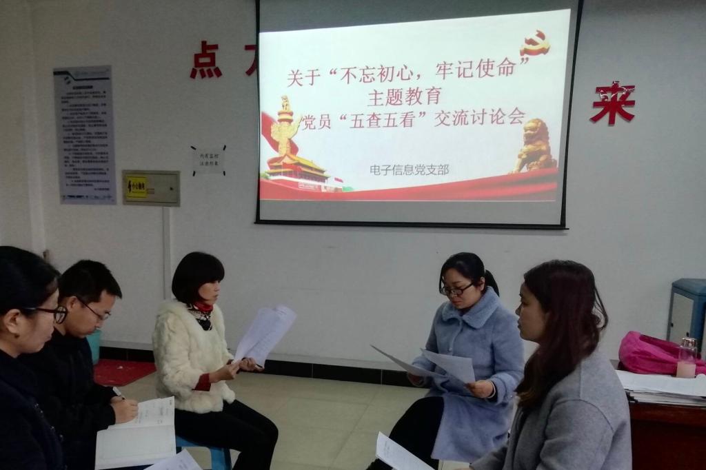 为了深入推进“不忘初心、牢记使命”主题教育,教育引导广大党员锤炼坚强党性,树牢宗旨意识,20191125日下午16:30,电子工程学院党总支以支部为单位分别在8-3038-4038-404召开了五查五看党组织生活会,此次会议由支部书记屈宝鹏老师、马艳阳老师、刘沛静老师主持,出席本次会议的有:各个支部的所有正式党员、预备党员及重点发展对象。