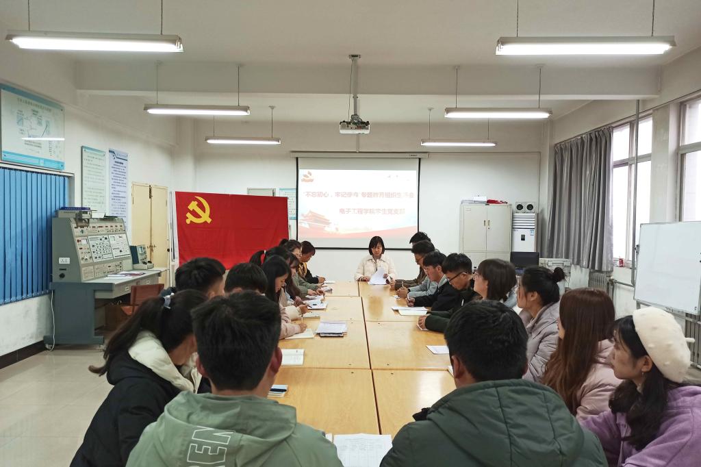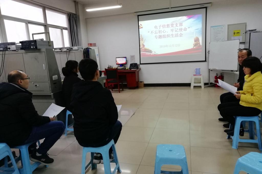 为进一步落实“不忘初心、牢记使命”主题教育相关安排,固化教育成果,提升基层党支部组织力,根据校党委文件要求,12月12日下午,电子工程学院各党支部分别在8-303、8-403和8-404教室召开了2019年度“不忘初心、牢记使命”主题教育专题组织生活会和党员民主测评大会,会议由各党支部书记主持,参加本次会议的有电子工程学院全体教工党员和学生党员。