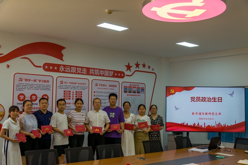 数字通信教师党支部近期举办庆祝中国共产党成立101周年系列活动。7月1日当天,支部全体党员通过微信平台发布学习“学党史、守初心”的心得体会,抒发对党的热爱之情。6月29日下午,在党员之家举行党员集体过政治生日,党总支书记赵鹏为教师党员赠送“政治生日贺卡”,祝愿全体党员“政治生日”快乐,并为新党员李婉寄语。