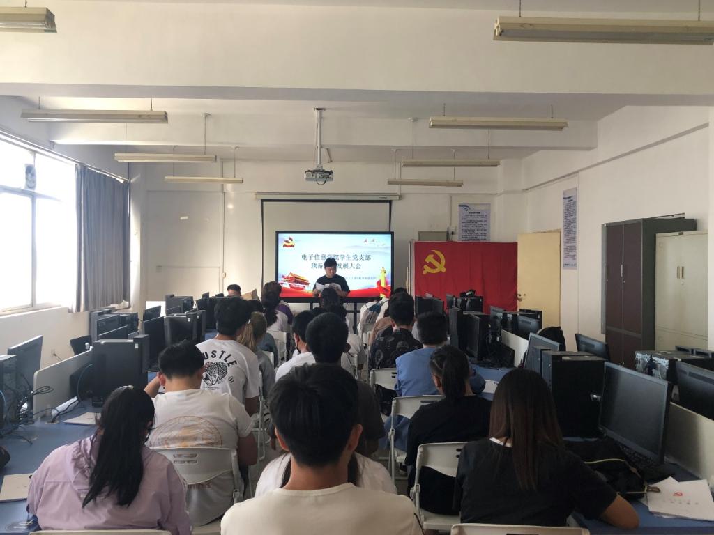最后,由电子信息学院党总支书记赵鹏老师对本次会议进行总结并对本支部党员以及谭阿蕊、王婉婷等28名同志提出了希望,要不忘初心跟党走,在今后的学习工作中,坚定目标、严格要求自身,加强政治理论学习,努力改正现有不足,积极向优秀共产党员学习树立先锋模范作用。