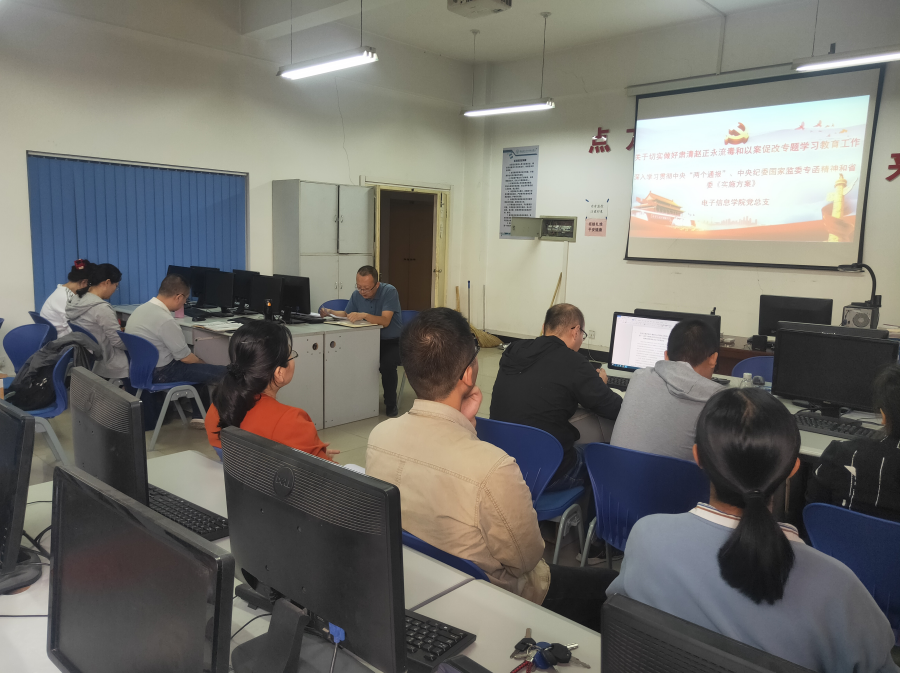 根据切实做好肃清赵正永流毒和以案促改专题学习教育工作基层党组织专题学习安排,电子信息学院党总支于2020年9月29日召开专题学习会。本次专题学习会由党总支书记赵鹏主持,会议重点对中央“两个通报”、中央纪委国家监委专函精神和省委《实施方案》学习模块进行学习。