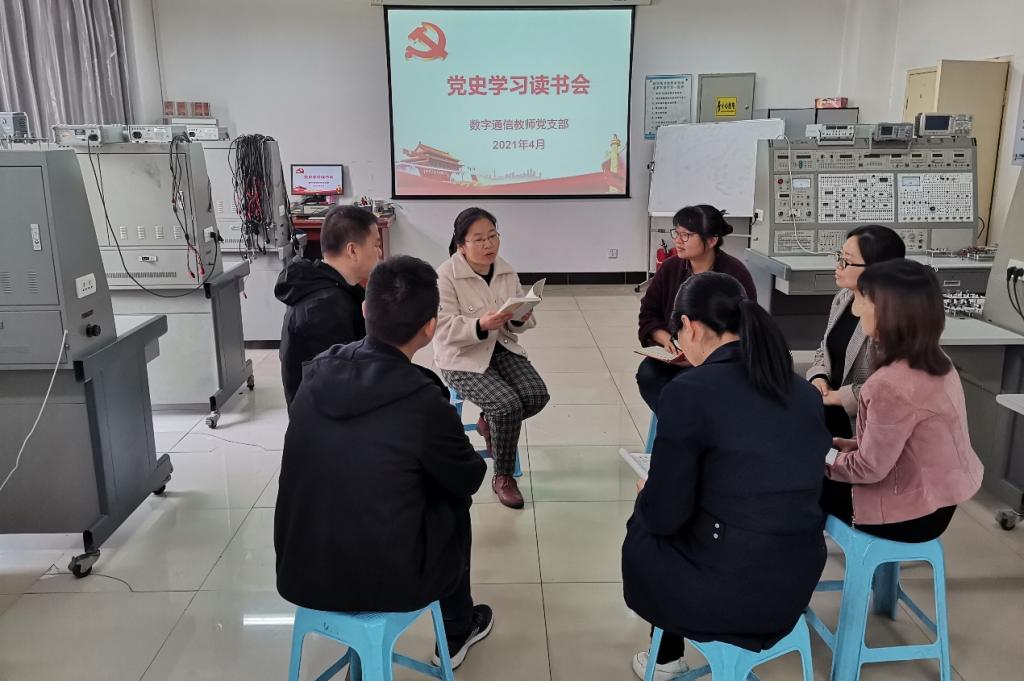 2021年4月,电子信息学院党总支各基层党支部组织开展了“学党史·庆百年”党史学习教育专题读书会,主要学习了《论中国共产党历史》中的“知史爱党,知史爱国”等内容。