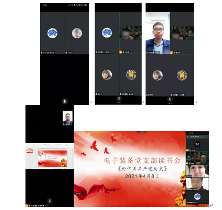 【电子装备教师党支部】为了加强党员的政治理论基础,积极响应“四史”学习,电子装备党支部全体党员于2021年4月8日晚19:30-20:30,在线上召开学习交流,交流以读书会的形式开展,会议由支部书记屈宝鹏主持。