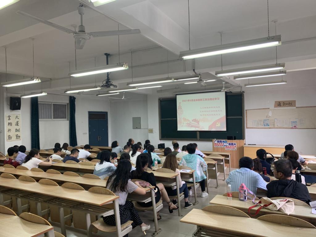按照陕国职党宣〔2021〕13号文件《关于2021年6月教职工政治理论学习安排的通知》的要求,6月3日16:50分电子信息学院、人工智能学院和艺术与设计学院党总支在2-224联合召开了2021年6月教职工政治理论学习会议,会议由电子信息学院党总支书记赵鹏主持,三个分院的全体教职工参加了会议。