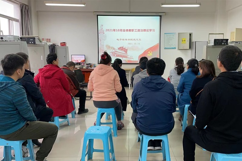 按照陕国职党宣〔2021〕17号文件《关于2021年10月教职工政治理论学习安排的通知》要求,10月14日下午5点,电子信息学院党总支组织全体教职工在8-403进行10月份政治理论学习,会议由电子信息学院党总支委员侯艳红主持,全体教职工参加会议。