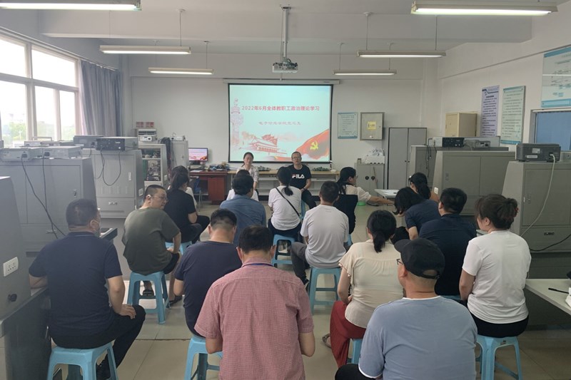 根据陕国职党宣《关于2022年6月教职工政治理论学习安排的通知》要求,6月7日下午,电子信息学院党总支在8-403召开了6月份教职工政治理论学习会议,会议由党总支书记赵鹏主持,全体教职工参加了此次学习。