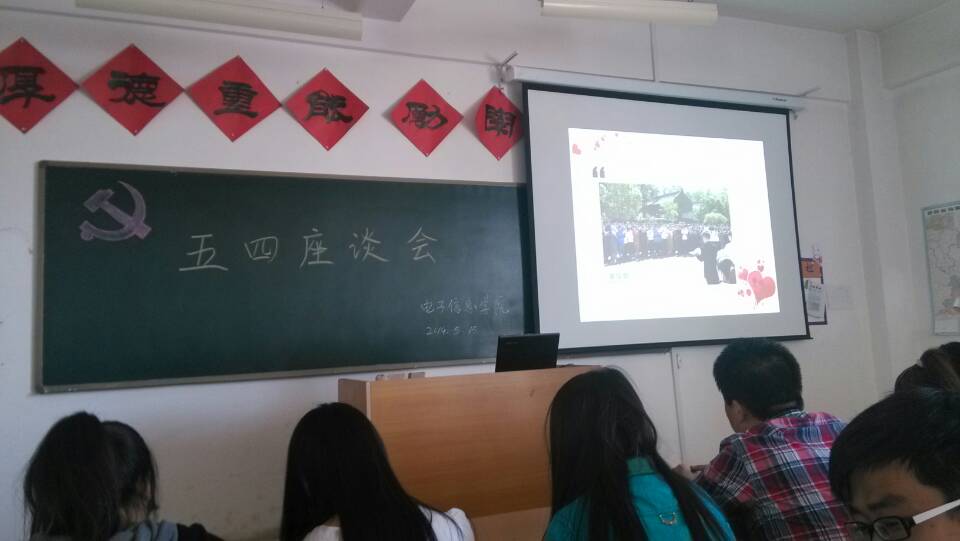 2014年5月15日下午,电子信息学院团总支在3-411召开五四青年节座谈会既学习贯彻习近平总书记五四讲话座谈会。会议由团总支书记赵鹏老师主持,2012、2013级入党积极分子和预备党员、学生干部共60多人参加了本次座谈会。座谈会主要学习了习近平总书记5月4日在北京大学师生座谈会上的讲话,并结合个人的学习和生活、未来发展和成长展开交流和讨论。
