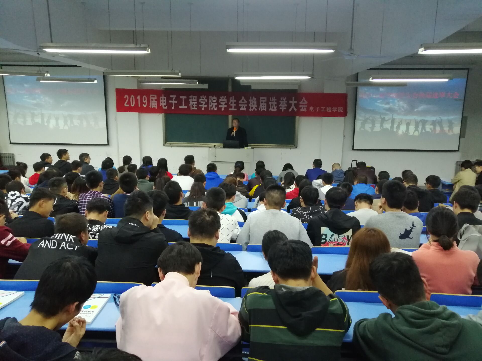 电子工程学院于2018年10月15日下午16:30在教三131教室开展了2018-2019学年学生会换届选举大会,本次换届选举大会由电子工程学院学生科干事刘沛静老师主持,出席本次活动的有电子工程学院党总支书记张双琦老师、学生科科长赵鹏老师、全体专兼职辅导员老师以及2017-2018学年所有学生会成员。
