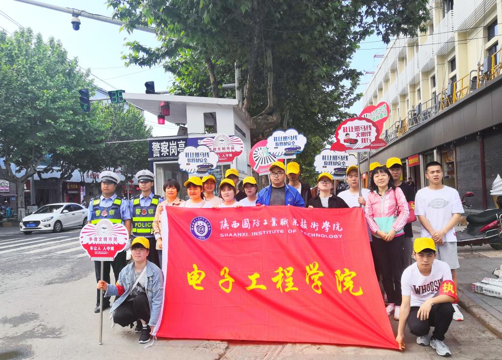 为了更好的建设和谐校园,鼓励学生在学习之余,加强安全知识学习,丰富课余生活,提高自身素养,营造和谐文明的学习、生活氛围。电子工程学院于5月11日在鄠邑区大十字举办了以“公共安全和精神文明创建”为主题的志愿者交通服务活动,此次活动在辅导员梁璞老师和鹿鸣老师的带领下,指挥行人和非机动车维护交通秩序。同学们以文明的引导方式劝阻乱穿马路、闯红灯等不文明行为,为鄠邑区增添了一道亮丽的风景线。