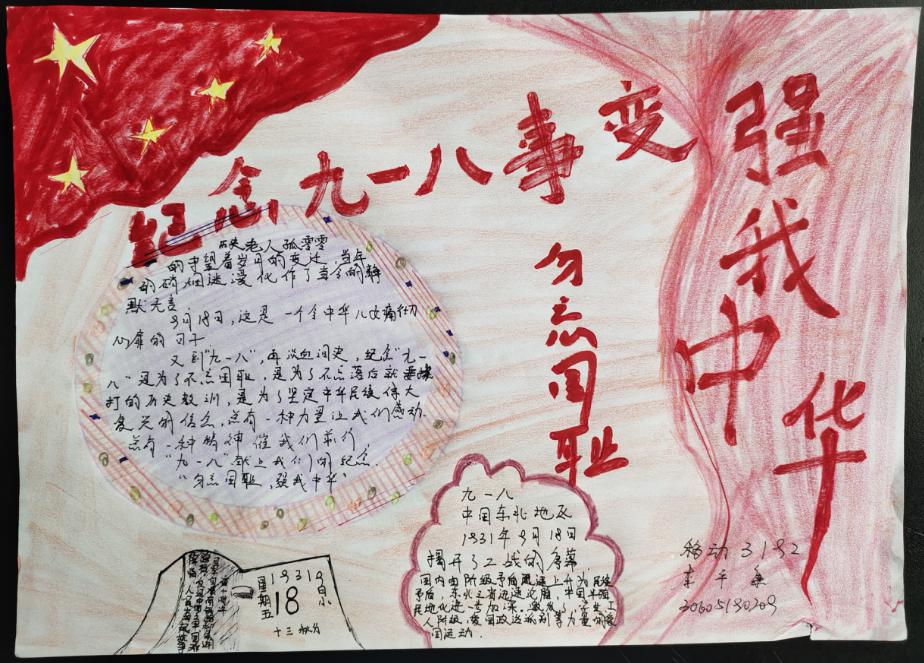 电子信息学院全体学生在辅导员老师的组织下,以班级为单位开展了纪念九一八勿忘历史的主题班会活动。班会上,各班级主持人向同学们简要介绍了关于九一八的基本史实,号召同学们珍惜眼前的和平,铭记中华民族所蒙受的悲惨历史,勇于担当自强不息。同时,组织学生们观看了《档案——勿忘国耻九一八》纪录片,让学生更深刻的了解到历史的真相,增强对革命先辈的敬畏之心,增强民族的自尊心自信心。会后,一些同学通过绘制手抄报的形式纪念九一八事变爆发89周年,表达了青年学生的自强之心。通过本次主题教育活动,同学们进一步了解了民族的苦难历史,在这个特殊的日子,让我们从铭记中吸取教训,坚定自强强国之心,深刻的缅怀革命先辈和牺牲的同胞们。