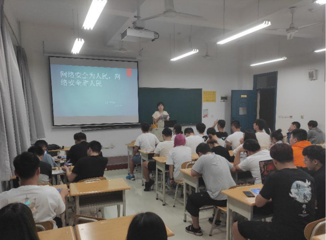 为深入宣传贯彻习近平总书记关于网络强国的重要思想和“四个坚持”重要指示精神,提高全校师生国家网络安全意识,强化师生的网络强国和网络安全责任,在学生处的统一安排下,2020年09月13日晚电子信息学院在全体学生中开展了“国家网络安全”主题班会活动。活动借助ppt,视频等方式向同学们展示了有关于网络安全的相关知识。结合大学生的学习与生活,展现互联网优越的一面,促使学生形成正确使用网络资源的观念。活动中又通过具体案例分享,详细介绍了大学生在网络使用过程中可能遇到的各种安全隐患,如网络交友不慎、网络购物不当、网络游戏成瘾、网络言语不实等,让同学们对网络安全形成全面清晰深刻的认识,提高对网络安全的辨别能力。活动中邀请学生们讲述亲身经历,介绍网络安全经验,指出网络只是丰富我们学习和生活的一种途径,不能过度依赖和沉湎于网络中,鼓励同学们在现实生活中多加锻炼,提高对网络使用的自控力,真正做到让网络成为大学生学习的助推器,生活中的好帮手。