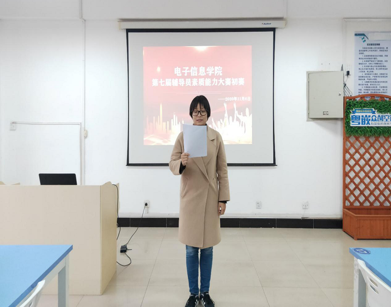 为贯彻全国高校思想政治工作会议精神,落实立德树人根本任务,提升辅导员职业能力和专业素养,切实推进我院辅导员队伍专业化、职业化建设,提高大学生思想政治教育质量。2020年11月6日下午电子信息学院于北校区教学八号楼303教室举办第七届辅导员素质能力大赛,参加此次大会的为电子信息学院全体辅导员老师。