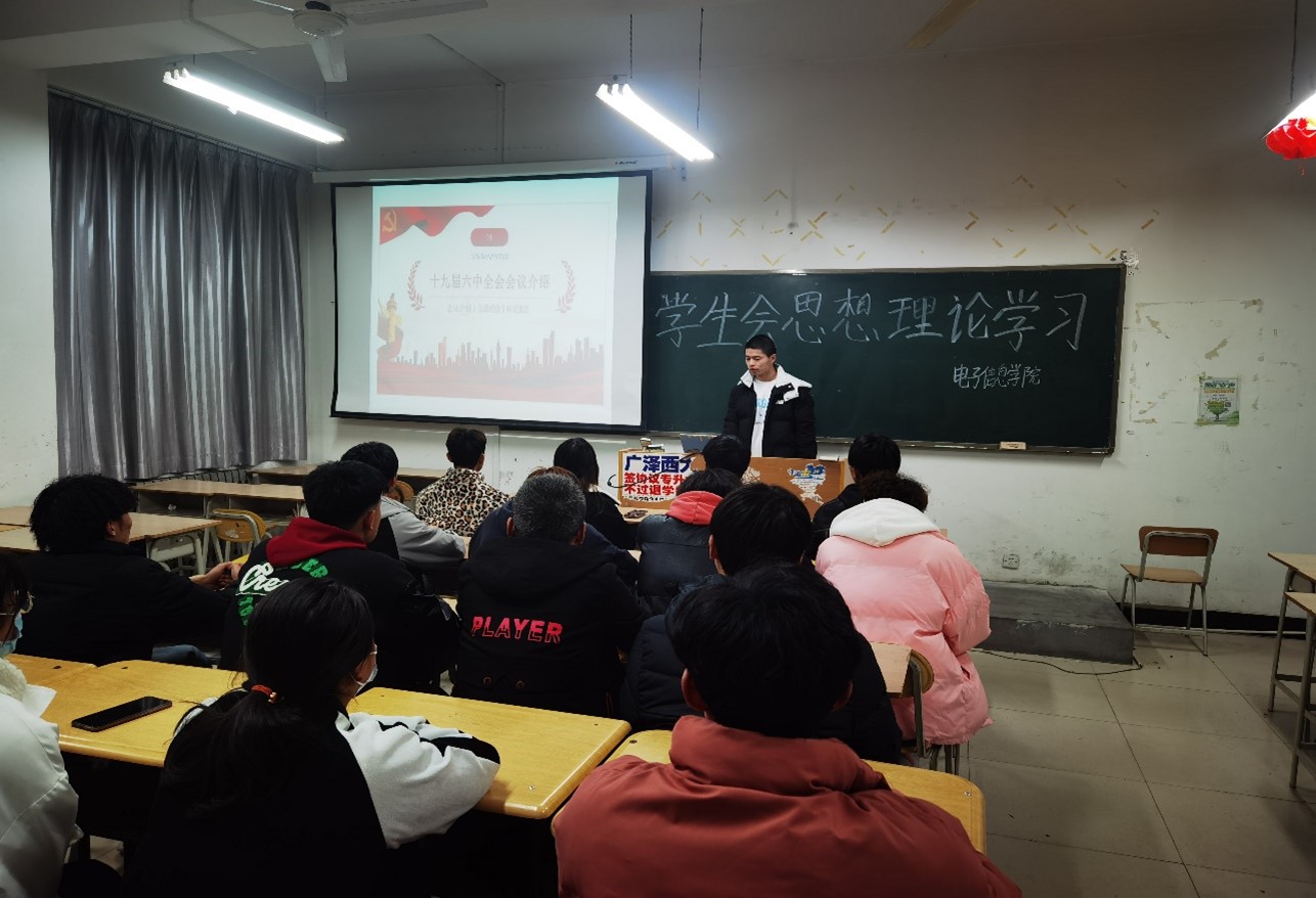 2021年11月24日,电子信息学院组织学生会思想理论学习会。会上强调学生会是一个接受老师、学生会主席团及学生监督与考察,受我院团总支和学生会主席团领导,在职能范围内开展工作,并积极配合校学生会开展工作的重要部门之一。学生会在院领导的亲切关怀、指导老师的正确领导下,一步步提高工作能力以及学生会工作的更好开展奠定了坚实的基础。