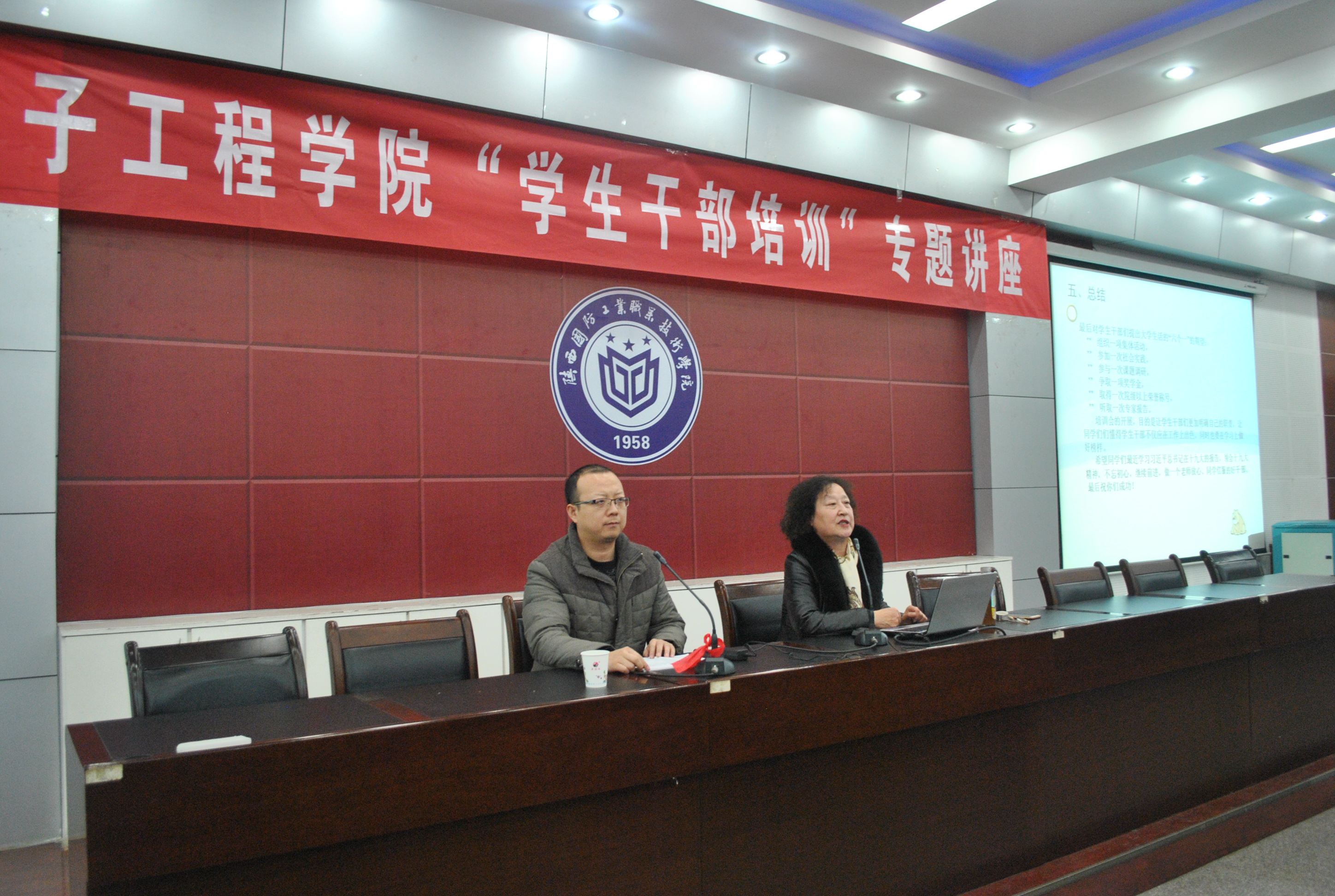 学生干部是学生中的优秀分子,是师生之间进行沟通交流的桥梁和纽带。是分院实施教育、管理工作的一支重要力量。学生干部队伍工作的得力与否和学生干部队伍素质的高低直接关系到学校整个育人目标的实现。为了树立广大学生干部高度的责任感,在学风、班风建设和学习党的十九大精神活动中发挥模范带头作用,电子工程学院于2017年12月14日晚7:30在北校区教学二楼报告厅举办“学生干部”专题培训讲座。本次活动邀请了具有丰富学生管理经验的陈黛琴老师为分院广大学生干部做报告。陈老师分别从“什么是学生干部,学生干部应有的素质,当好学生干部应注意的几个问题,怎样做一名优秀的学生干部”四个方面做了详尽的阐释。通过具体的事例,进行分析点评。陈老师的报告获得了同学们一次又一次的掌声,大家都感觉到收益非浅,对今后的工作即有了方法,也有个信心。