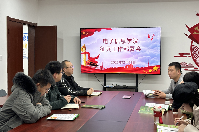 为贯彻落实学校征兵工作会议精神,深入宣传大学生参军入伍政策,点燃大学生参军热情,在2023年12月28日,电子信息学院在博远楼602召开征兵工作会议。此次会议的目的是深入解读专科生毕业年级应征入伍的优势,以及为毕业生提供关于春季入伍政策的详细信息。会议由赵鹏书记主持,全体毕业班辅导员参与。